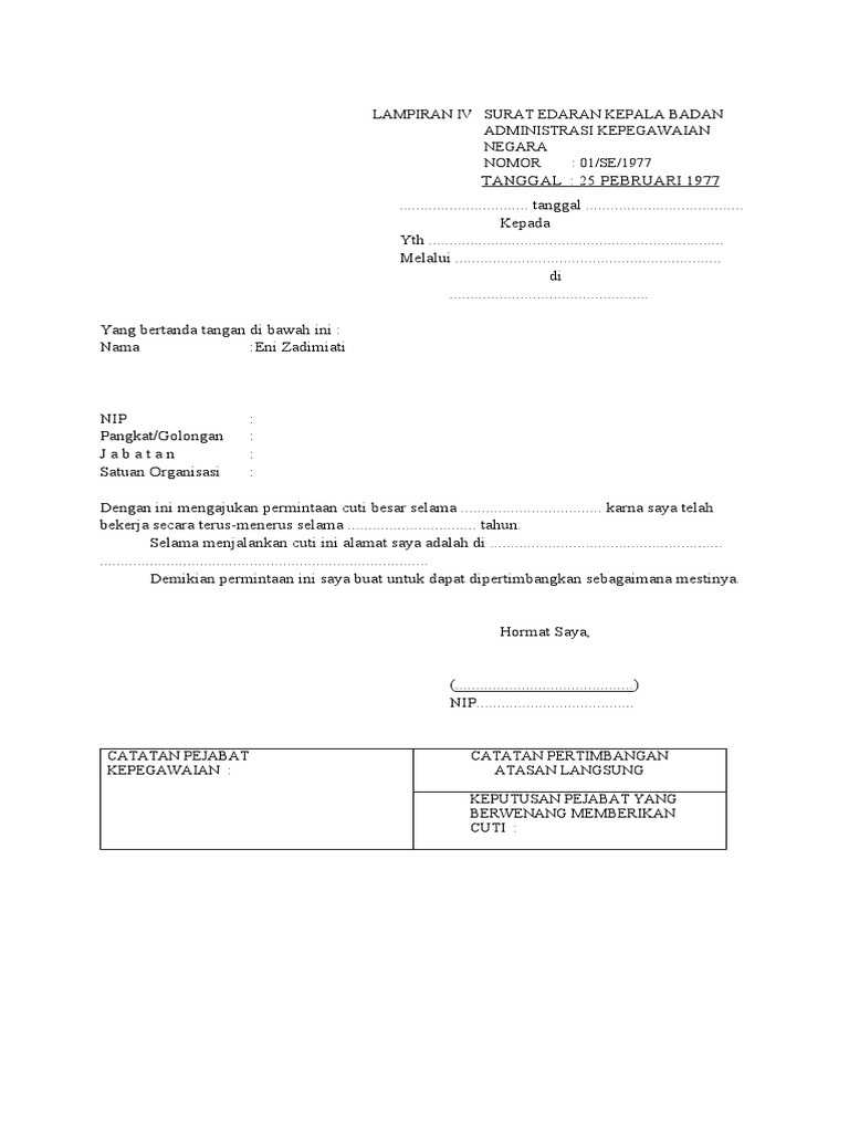 Contoh Surat Cuti Besar : Doc Surat Cuti Bersalin Dinas Kesehatan Wanto Sahabat Academia Edu - Cuti besar adalah cuti yang diberikan kepada pns yang telah bekerja secara terus menerus minimal selama 6 tahun dengan lama cuti 3 tiga bulan termasuk cuti tahunan dalam tahun tersebut.