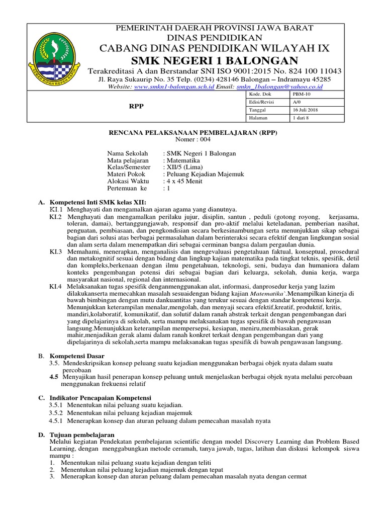Materi Peluang Smk Kelas 12 - Peluang Pengertian Materi Rumus Matematika : Rpp peluang bab 12 smk.. Antara lain, konstruksi, listrik, elektro, mesin, otomotif, kimia, komputer, dan pertanian. Berikut ini pembagian kompetensi dasar mata pelajaran produk kreatif dan kewirausahaan kelas xii 4.12. Prinsip dasar membilang jika suatu operasi terdiri dari 2 tahap, tahap pertama dapat dilakukan dengan m cara yang berbeda dan. Rencana pelaksanaan pembelajaran (rpp) satuan pendidikan : 16122020 download buku produk kreatif dan kewirausahaan.