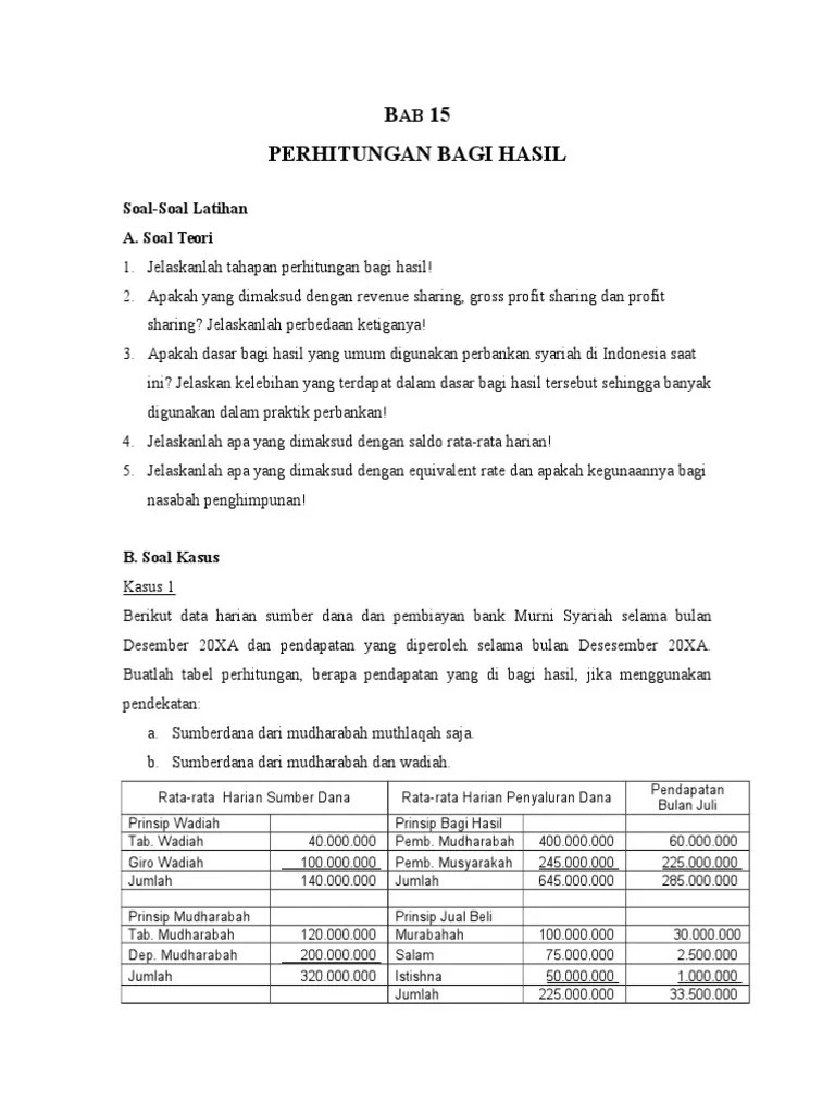 135605997 contoh soal akuntansi syariah pdf. Contoh soal dan jawabannya jurnal . Sangun adalah nasabah bank abc syariah cabang t.karang. Piutang istishna rp 150.350.000,00 309 kewajiban kepada bank indonesia rp 475.600.035.000,00. Soal pilihan ganda materi perbankan syariah dan jawaban · 1.